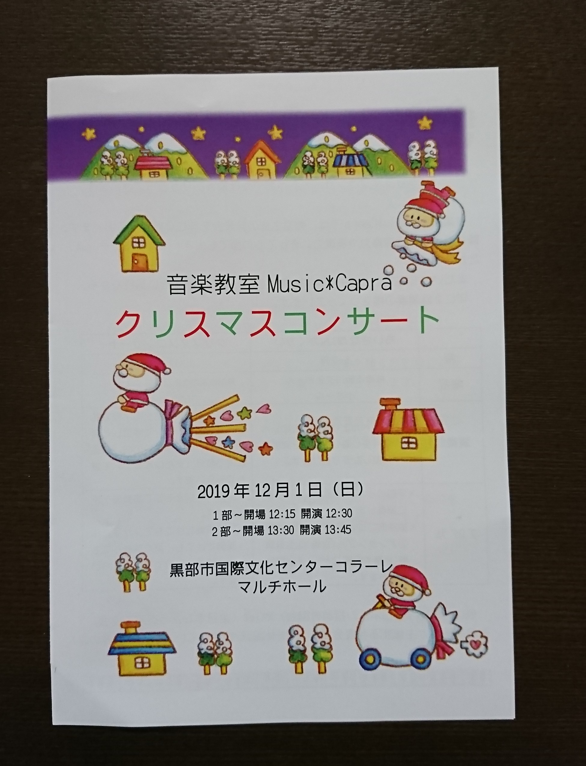 音楽教室Music*Capra(ミュージック*カプラ)です。12/1は教室のクリスマスコンサートを行いました。