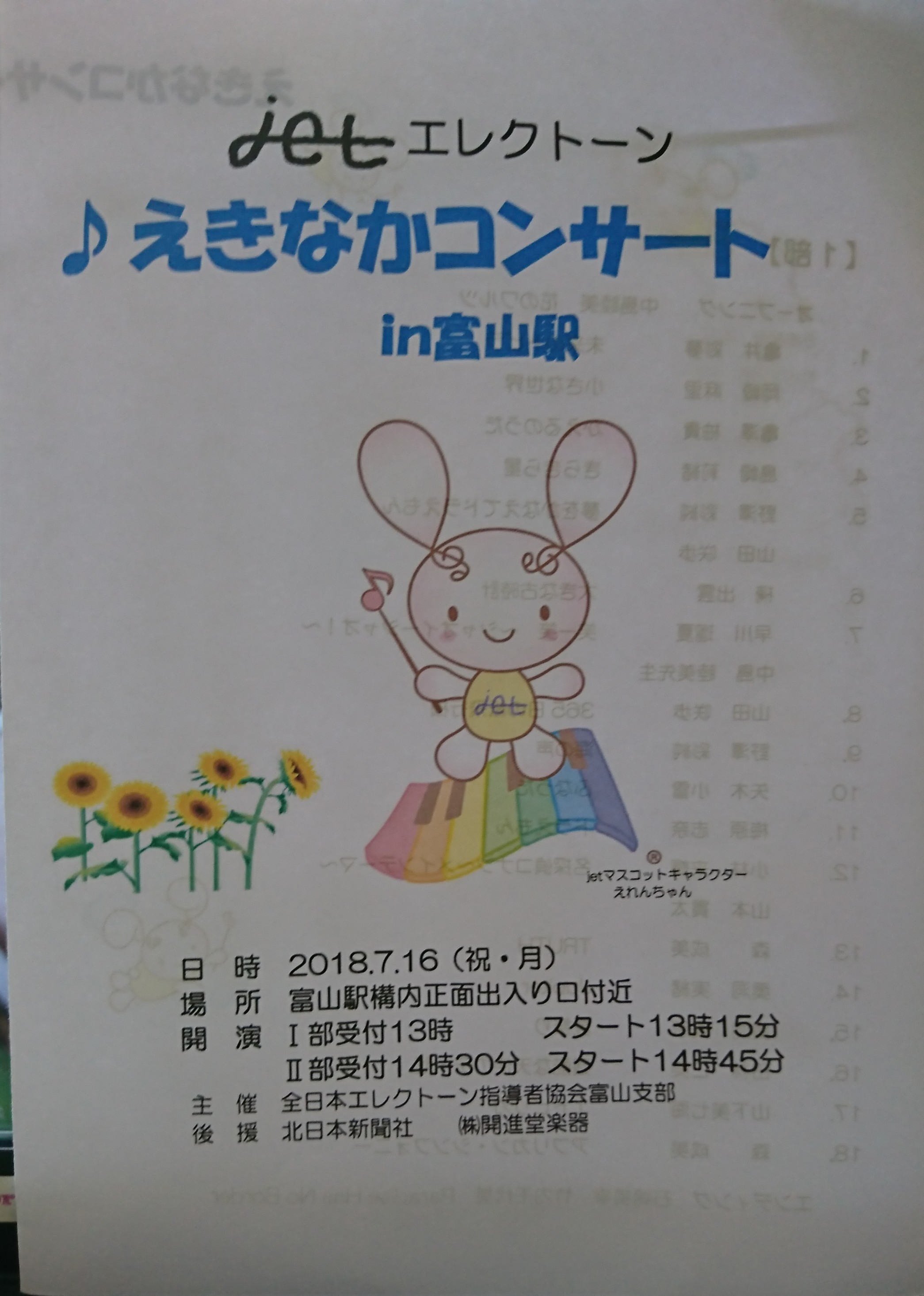 7/16(月祝)の駅ナカコンサートへ気持ちを切り替えです!