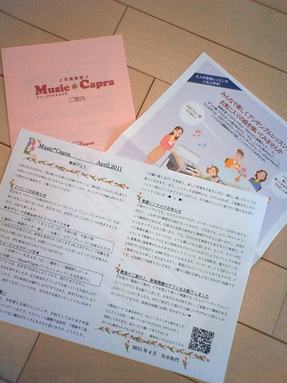 教室の案内やレッスンのチラシも一緒に配布いたします
