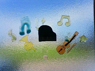レッスン室の窓ガラスに、