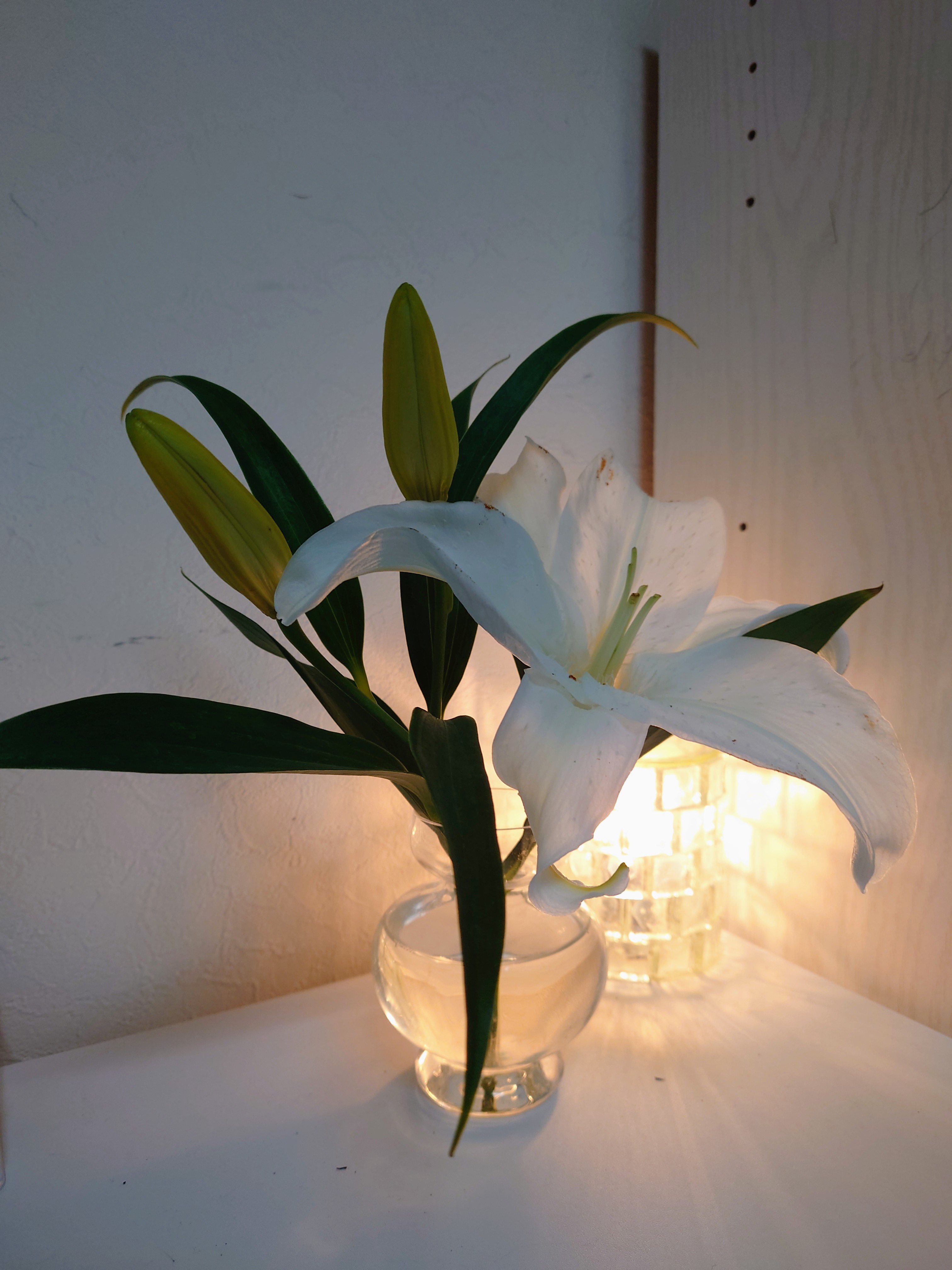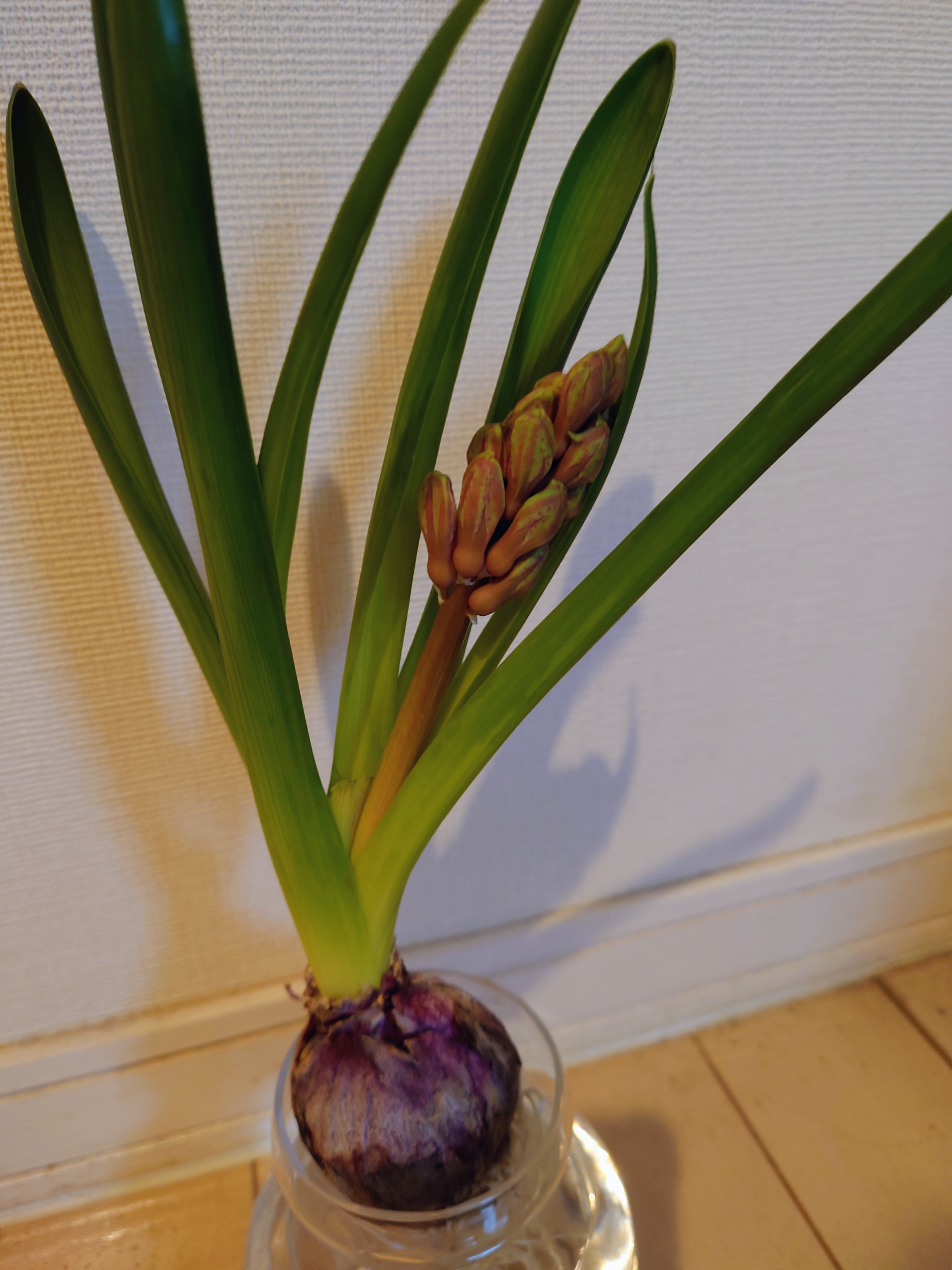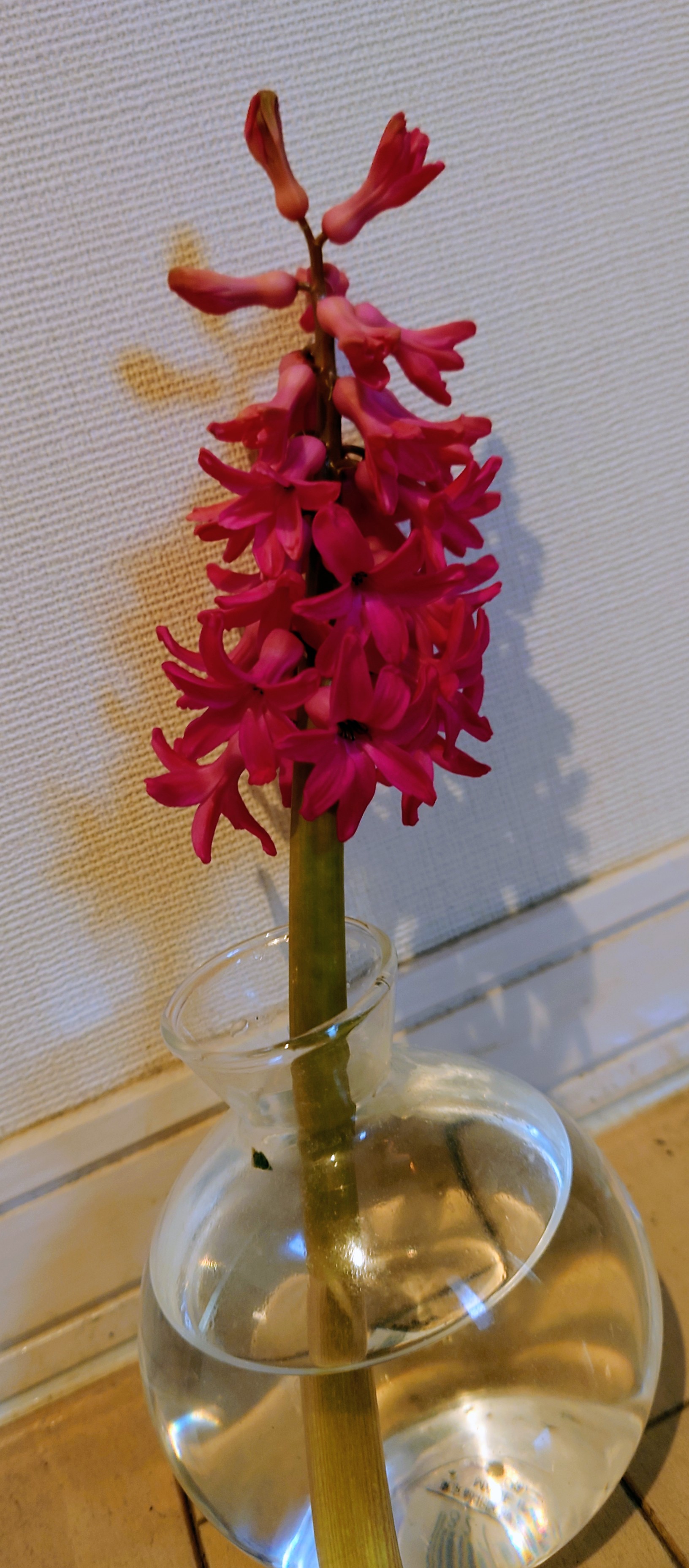 玄関で水栽培していたヒヤシンスが、綺麗に花を咲かせてくれました。